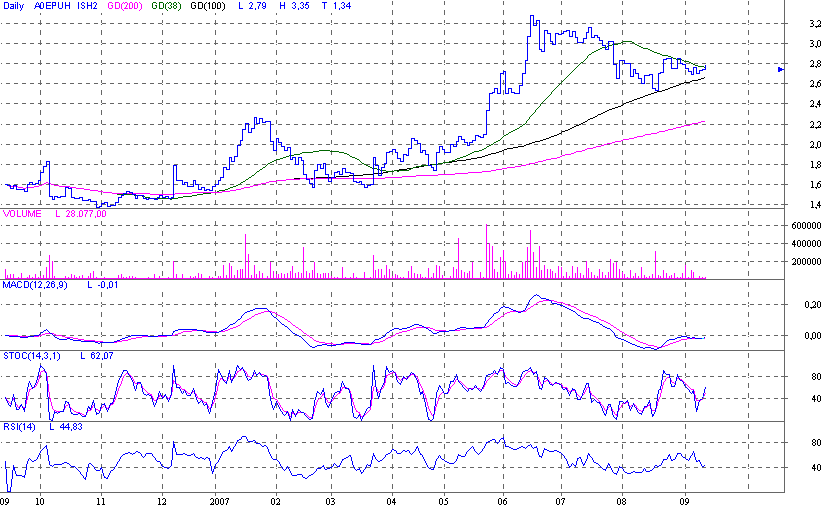 Zudem tut sich bei der Aktie in letzter Zeit auch im charttechnischen Bereich einiges. Die Aktie schickt sich an das Aprilhoch aus 2006 bei 3,84 Euro zu knacken. Gelingt ihr dies, wäre der Weg frei bis 4,50 Euro.