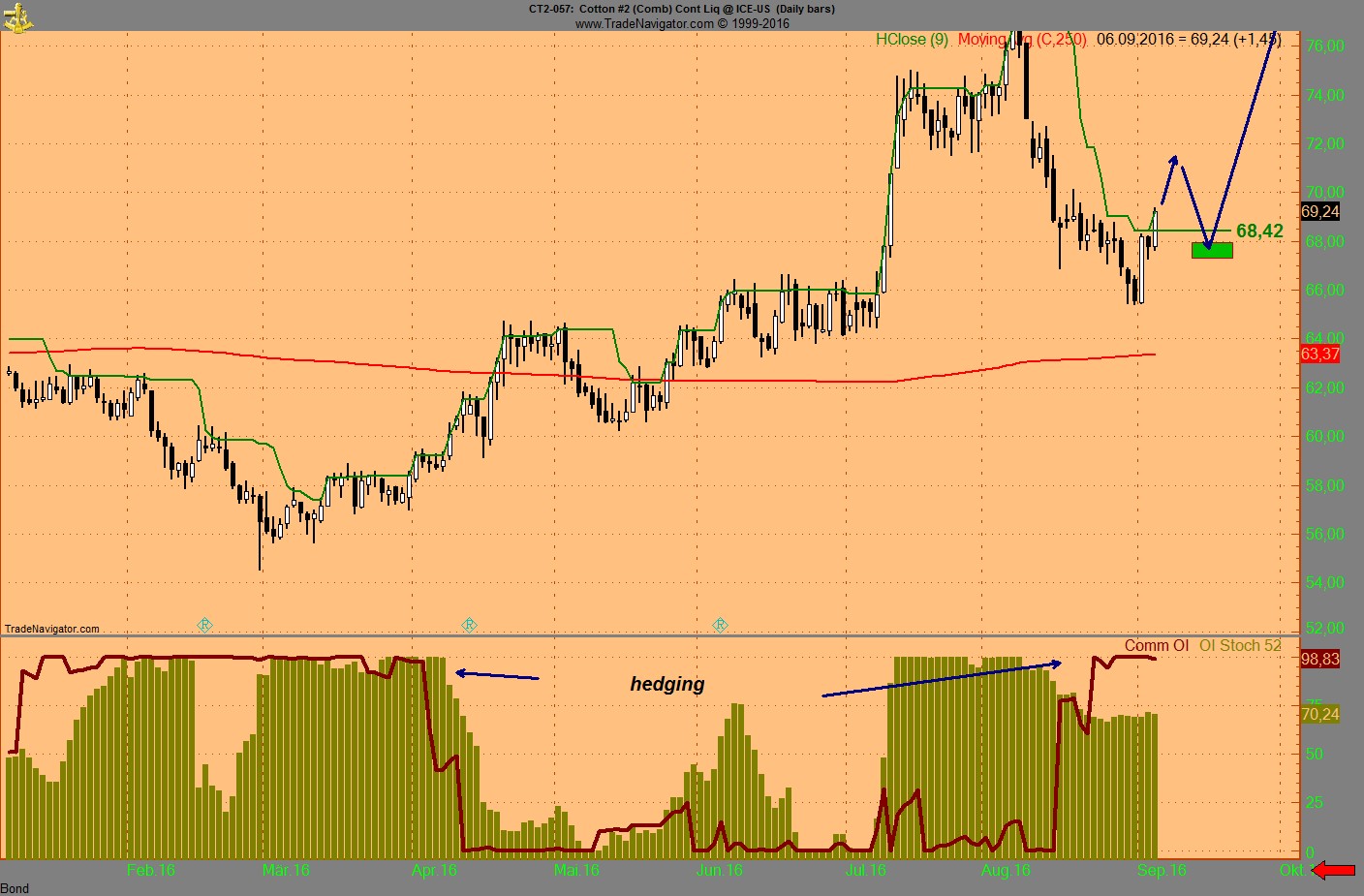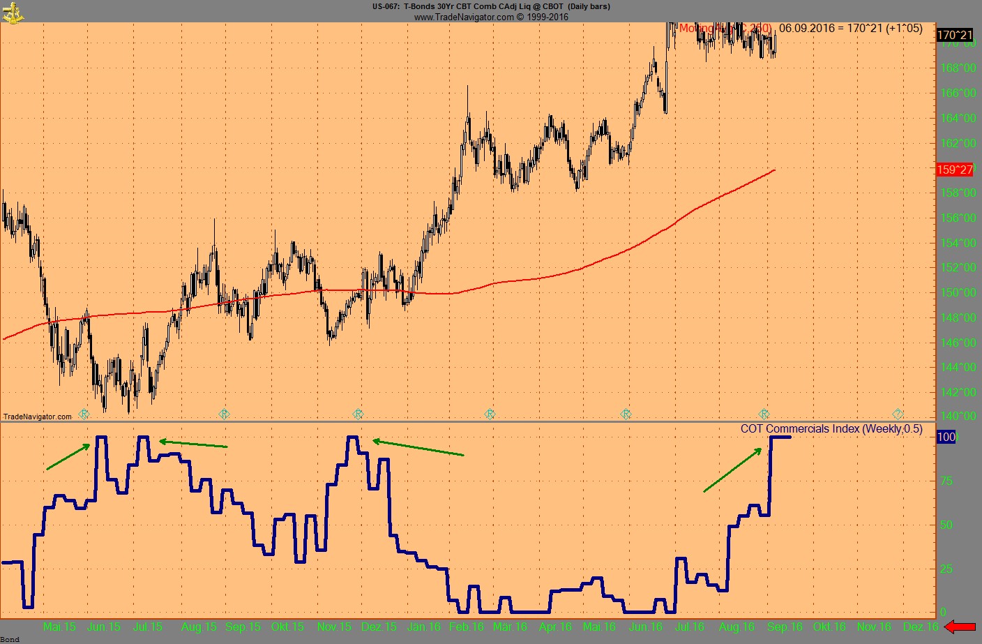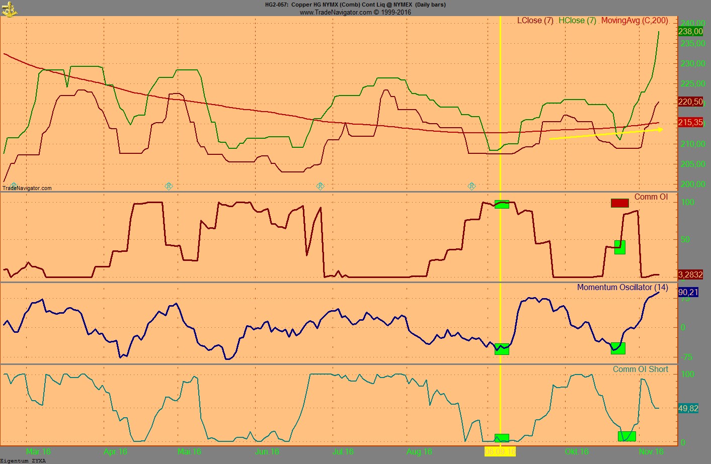 Das Momentum am Boden und der Indikator für das Comm OI war auf 100
