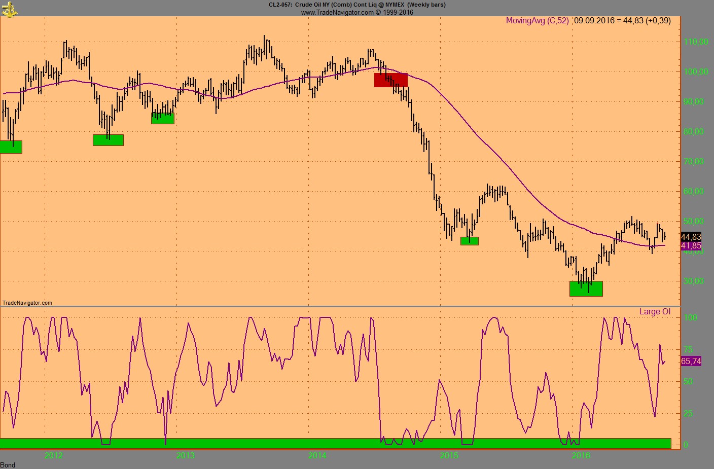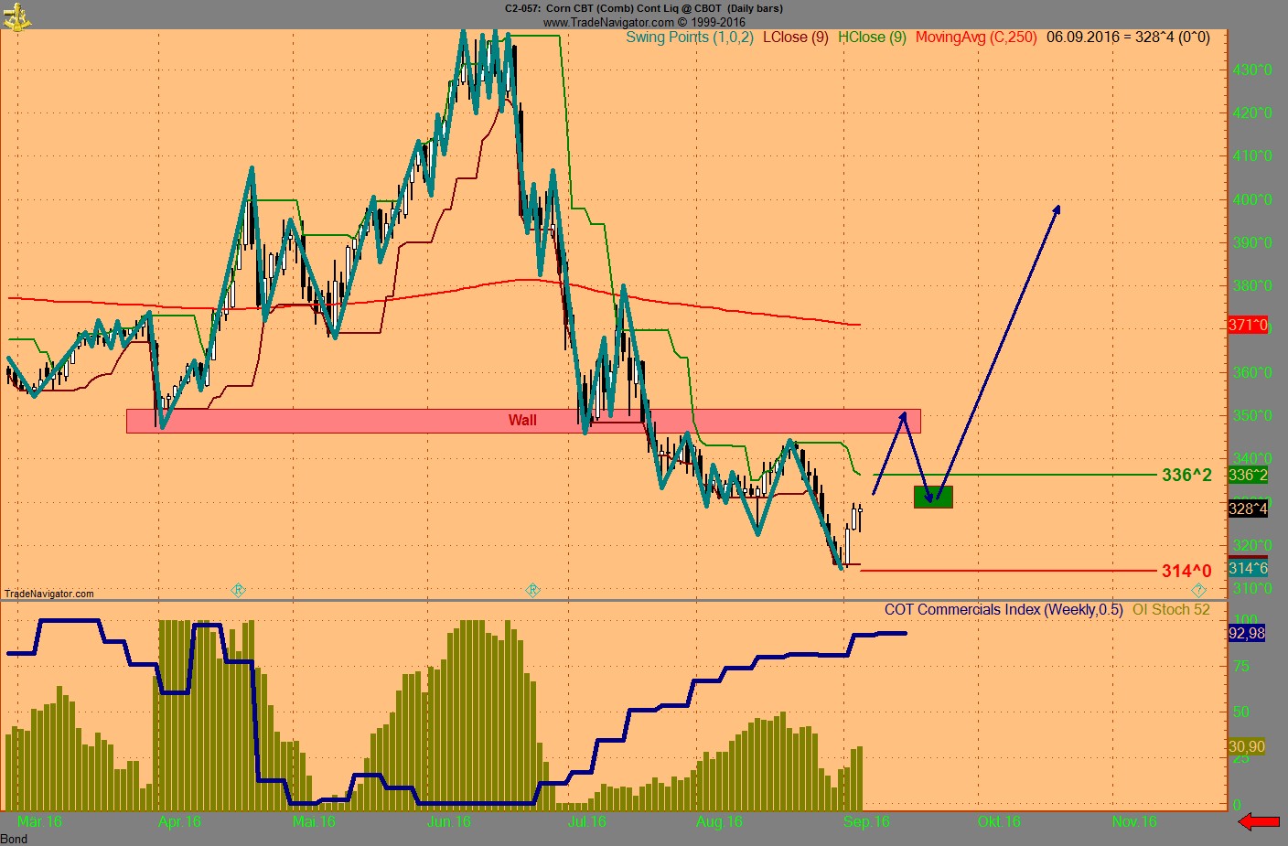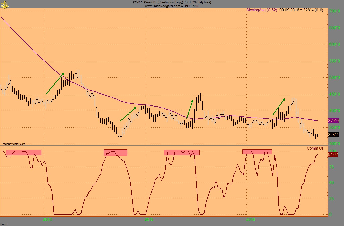 Das Momentum am Boden und der Indikator für das Comm OI war auf 100