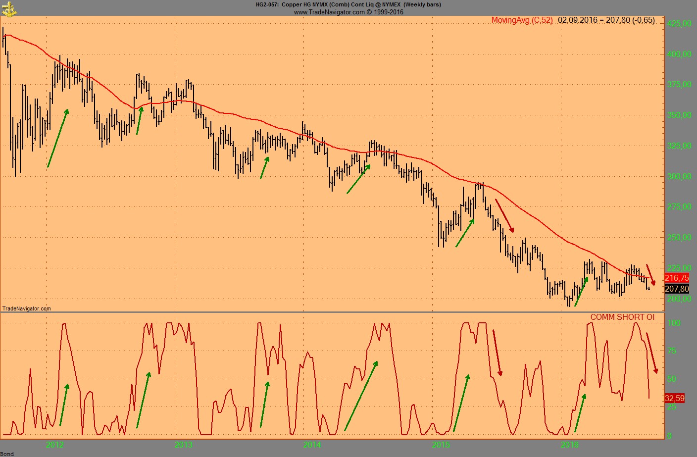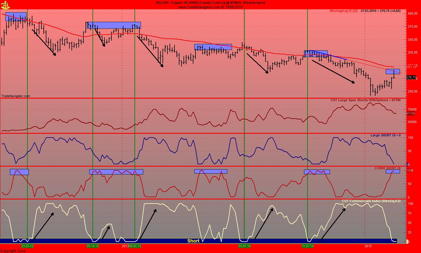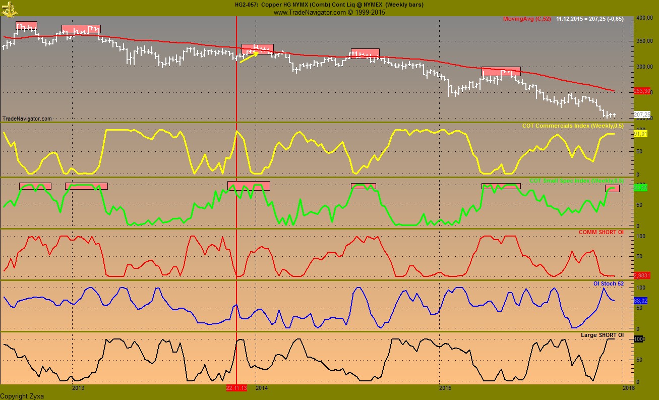 Noch ist der COT Commercial Index auf 0, wenn der beginnt zu steigen haben wir fallende Preise....was auch Seasonal passen wuerde, denn mitte April ist das Jahreshoch bei Kupfer.