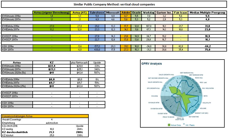 - Einzig mögliche Bewertungsansätze: EV/Umsatz + EV/EBITDA (EBIT, EBT, EAT nicht vorhersehbar)