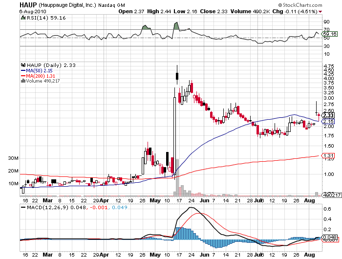 Hauppauge Digital, Inc. (NASDAQ: HAUP) is a leading developer and manufacturer of digital TV tuner products for personal computers. Through its Hauppauge Computer Works, Inc. and Hauppauge Digital Europe subsidiaries, the Company designs and develops digital TV video boards for TV-in-a-window, digital video editing and video conferencing. The Company is headquartered in Hauppauge, New York, with administrative offices in New York, Singapore, Taiwan, Ireland and Luxembourg and sales offices in Germany, London, Paris, The Netherlands, Sweden, Italy, Spain, Singapore and California. The Company's Internet web site can be found at www.hauppauge.com. Hauppauge, the Hauppauge logo and WinTV are registered trademarks of Hauppauge Computer Works, Inc. Apple, iPhone, iPod and iMac are registered trademarks of Apple Inc. Other product or service names herein are the trademarks of their respective owners .