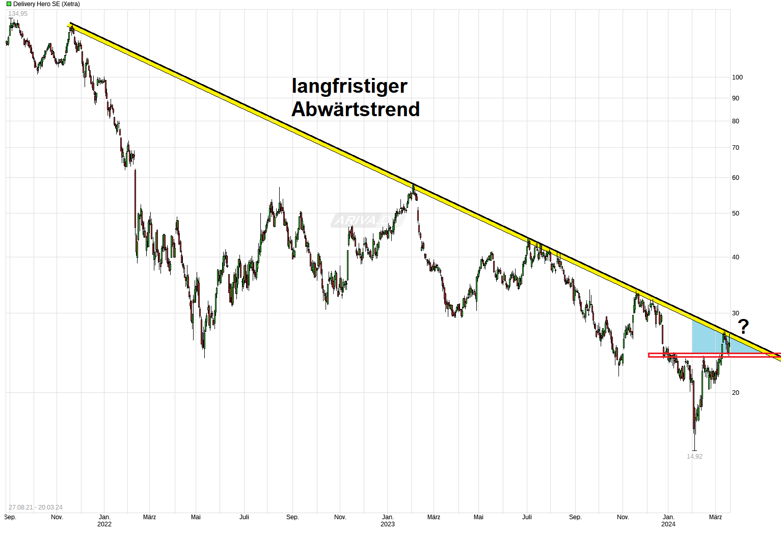 18.03.2024 - Delivery Hero will mehr Wandelanleihen zurückkaufen als avisiert https://www.ariva.de/news/...-wandelanleihen-zurckkaufen-als-11182595 "....Delivery Hero will Wandelanleihen in größerem Umfang zurückkaufen als jüngst angekündigt. Der beabsichtigte Rückkaufbetrag steige von mindestens 300 auf etwa 600 Millionen Euro...... Dabei sollen sämtliche noch ausstehenden Papiere mit Fälligkeit 2025 sowie jene mit Fälligkeit 2026 bis zu einem Nennbetrag von 100 Millionen Euro erworben werden. Der aktuell noch ausstehende Nennbetrag der 2026-Papiere betrage 750 Millionen Euro. Die Rückkauf-Einladung an die Inhaber von Wandelschuldverschreibungen endet am 20. März. Das Unternehmen hatte Anfang März Anpassungen seiner Finanzierung bekannt gegeben und war damit Zweifeln an seiner Finanzkraft entgegengetreten. Dabei ging es um die Veränderung und Verlängerung eines großen Kreditrahmens sowie um die Aufstockung von "einer oder mehrerer Kreditlinien". Zudem war der Rückkauf von Wandelanleihen für mindestens 300 Millionen Euro angekündigt worden. Diese Summe wurde nun aufgestockt...."