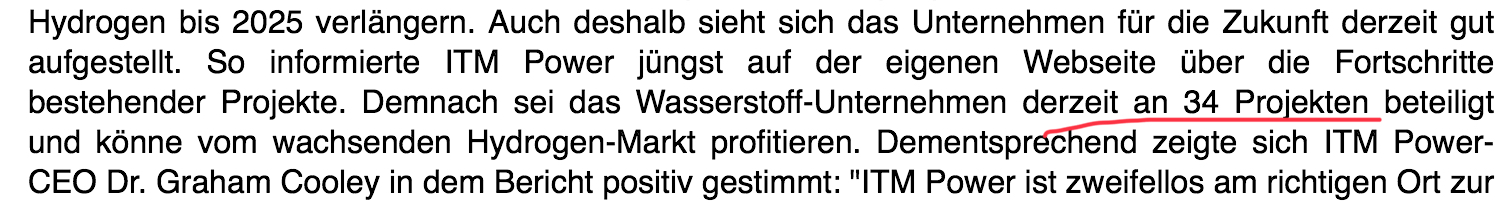 Keine Erneuerbaren Ebergien --> kein grüner Wasserstoff. Ergo Wasserstoff nur aus der Verbrennung von Öl, Gas, Kohle möglich. Wirkungsgrad unwirtschaftlich. Ergo noch jahrelanges Dümpeln von Firmen wie ITM Power mit hohen Verlusten und immer mehr Aktien zur Finanzierung der Verluste.