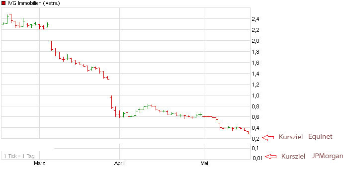 Die Privatbank Berenberg hat das Kursziel für IVG Immobilien nach der Telefonkonferenz zur angekündigten finanziellen Überprüfung von 2,40 auf 1,10 Euro gesenkt, die Einstufung aber auf "Hold" belassen. Die Immobiliengesellschaft habe nicht für Klarheit hinsichtlich der nächsten Schritte gesorgt, schrieb Analyst Kai Klose in einer Studie vom Donnerstag. Sollte die Wandelanleihe in Höhe von 400 Millionen Euro im März 2014 nicht bedient werden können, drohe die Insolvenz. Diese sei aber durchaus vermeidbar. So habe IVG mit dem Start eines zweiten Kavernen-Fonds gezeigt, wie Vermögensgegenstände in Bares umgemünzt werden können./mis/sf