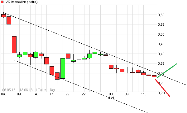 Am 13.06.2013 11:00:00 ist bei IVG Immobilien AG das Chartsignal Candlestick Hammer aufgetreten. Das Chartsignal Candlestick Hammer ist ein long Signal.