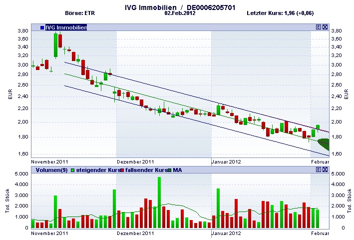 Deine blaue Linie krieg ich jetzt ganz genau auch als obere Begrenzung eines Regressionskanals (deswegen sieht man sie unten auch nicht mehr, ich hatte sie aber erst rot eingezeichnet). Der gilt sogar seit Oktober und dürfte also ziemlich aussagekräftig sein. Schön schön. Aber ob das eine Kerzlein das da halb rausschaut schon was signifikantes ist, da bin ich skeptisch.