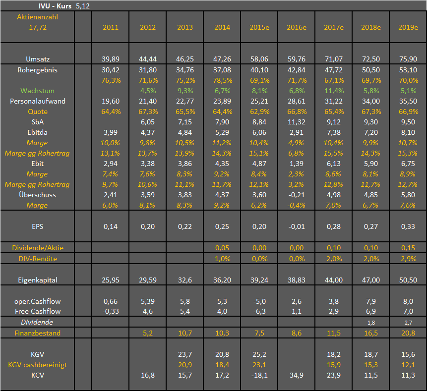 ich geh allerdings beim CF bereits von einem höheren OCF aus im Vergleich zu den cash earnings, die man anhand Überschuss bei 5,8 Mio erwarten könnte. Klar könnte es stichtagsbezogen auch weit mehr OCF werden, aber das bei IVU vorauszusehen, ist schlichtweg unmöglich. Forderungen mögen ja kurzfristig eingetrieben werden, aber bei weiterer Geschäftsausweitung kommen auch immer neue Forderungen hinzu. Grundsätzlich könnte es daher durchaus sein, dass IVU ständig nen großen Forderungsbestand vor sich herschleppt. Allerdings geh ich schon davon aus, dass wir gerade (Stichtag Ende 2017) da eine kurzfristige Spitze gesehen habe, die sicherlich in 2018 etwas abgebaut wird.