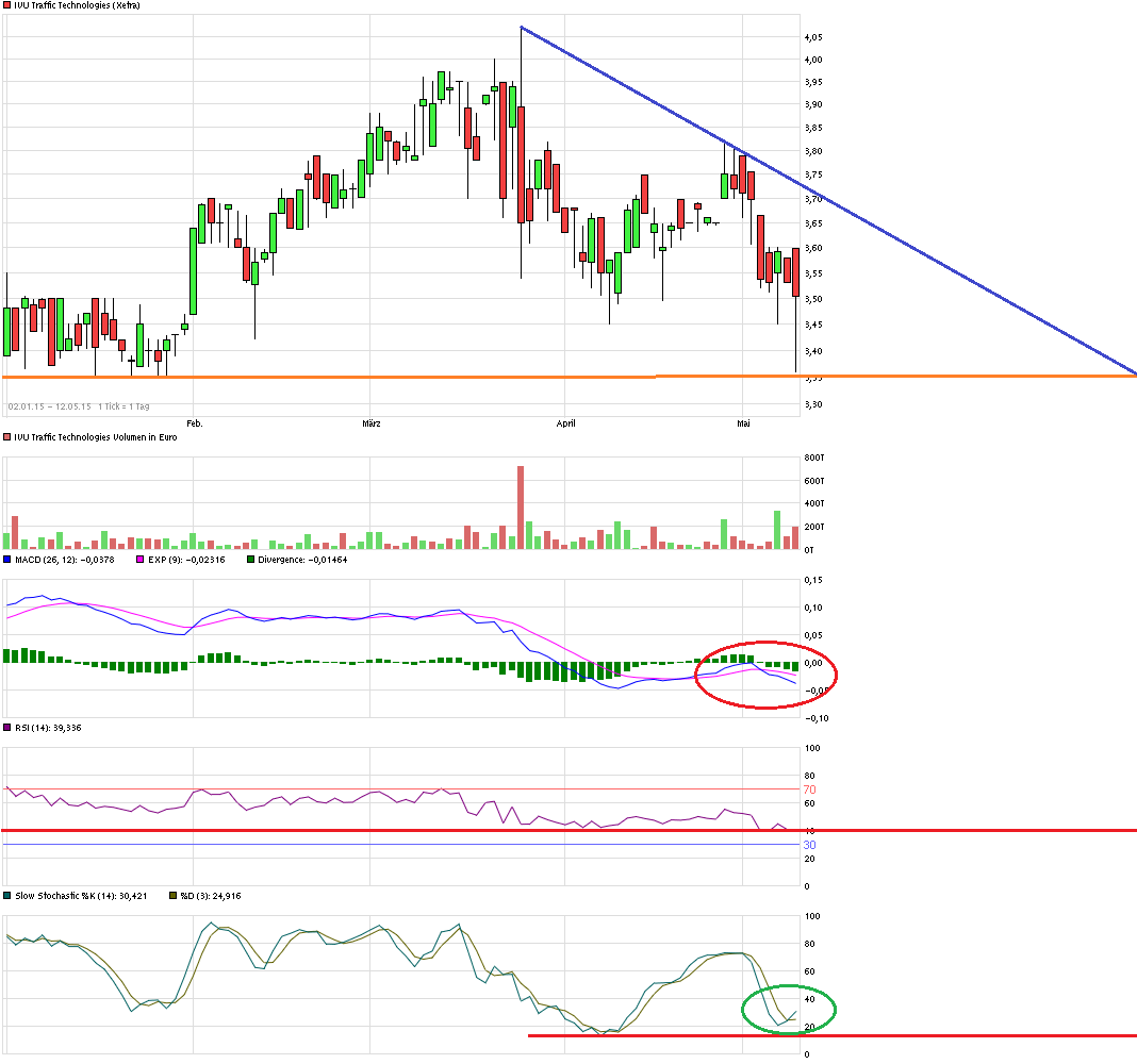 na ja, ich ging ja eh davon aus, dass wir im Frühsommer in einer Dax-Korrektur einen Boden bei 3,3-3,5 € ausbilden werden. Die Dax-Korrektur scheint es etwas eher zu kommen als gedacht. Liegt aber vor allem am wieder etwas steigenden Euro, so dass die US Anleger aus dem Dax aussteigen. Glücklicherweise hat es bisher keine großen Auswirkungen auf die Nebenwerte. Wäre ja auch grotesk, da sie vorher bei fallendem Euro mit dem Dax kaum mitgestiegen sind.