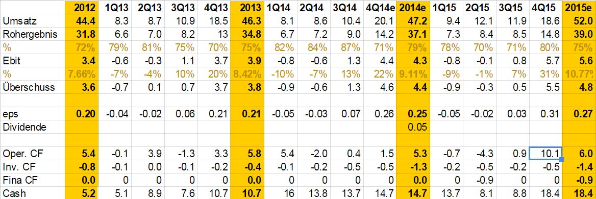 Später hat man daraus gelernt, gerade weil man 2004 kurz vor der Insolvenz stand. Das betont der Vorstand auch auf jeder Hauptversammlung. Deshalb hat man auch in der Konjunktur- und Finanzkrise 2008 und 2009 noch gute Gewinne und positive Cashflows erwirtschaftet. Wenn man sich die heutige Kostenstruktur anschaut, sieht man, dass IVU wohl nur dann in die Verlustzone rutschen würde, wenn der Umsatz um 40-45% auf unter 30 Mio € einbrechen würde. Und selbst dann kann man bei ein paar einfachen Maßnahmen noch Gewinne machen, wie man 2006/07 gesehen hat als man bei Umsätzen um 30 Mio € noch Gewinne machte.