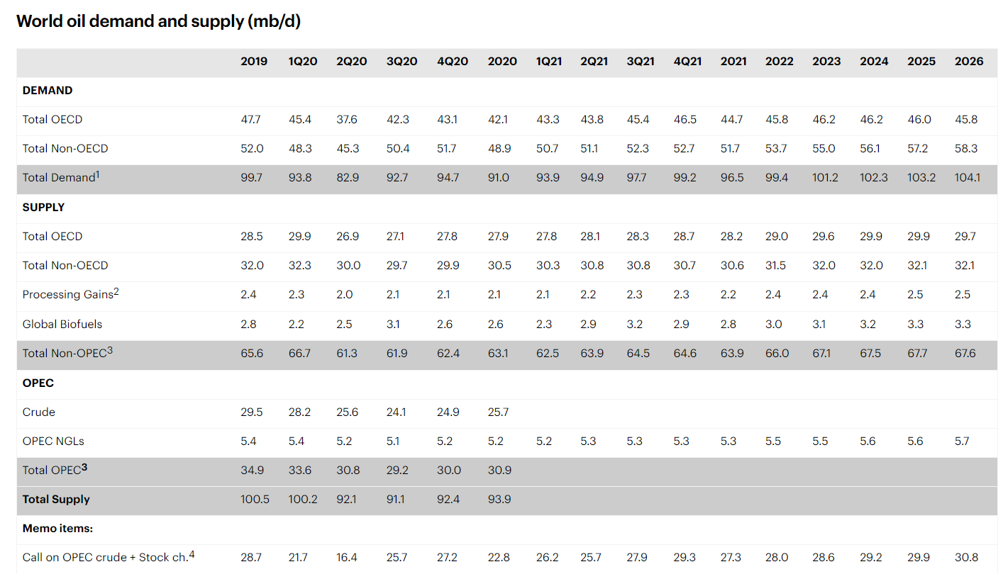 Wenn du dich für Angebot und Nachfrage am Ölmarkt interessierst kann ich dir die Oil Reports der IEA (International Energy Agency) empfehlen. Die IEA ist sowas wie der Goldstandard wenn es um Energiestatistiken geht. Hier deren Oil Report 2021 (inkl Prognosen bis 2026):