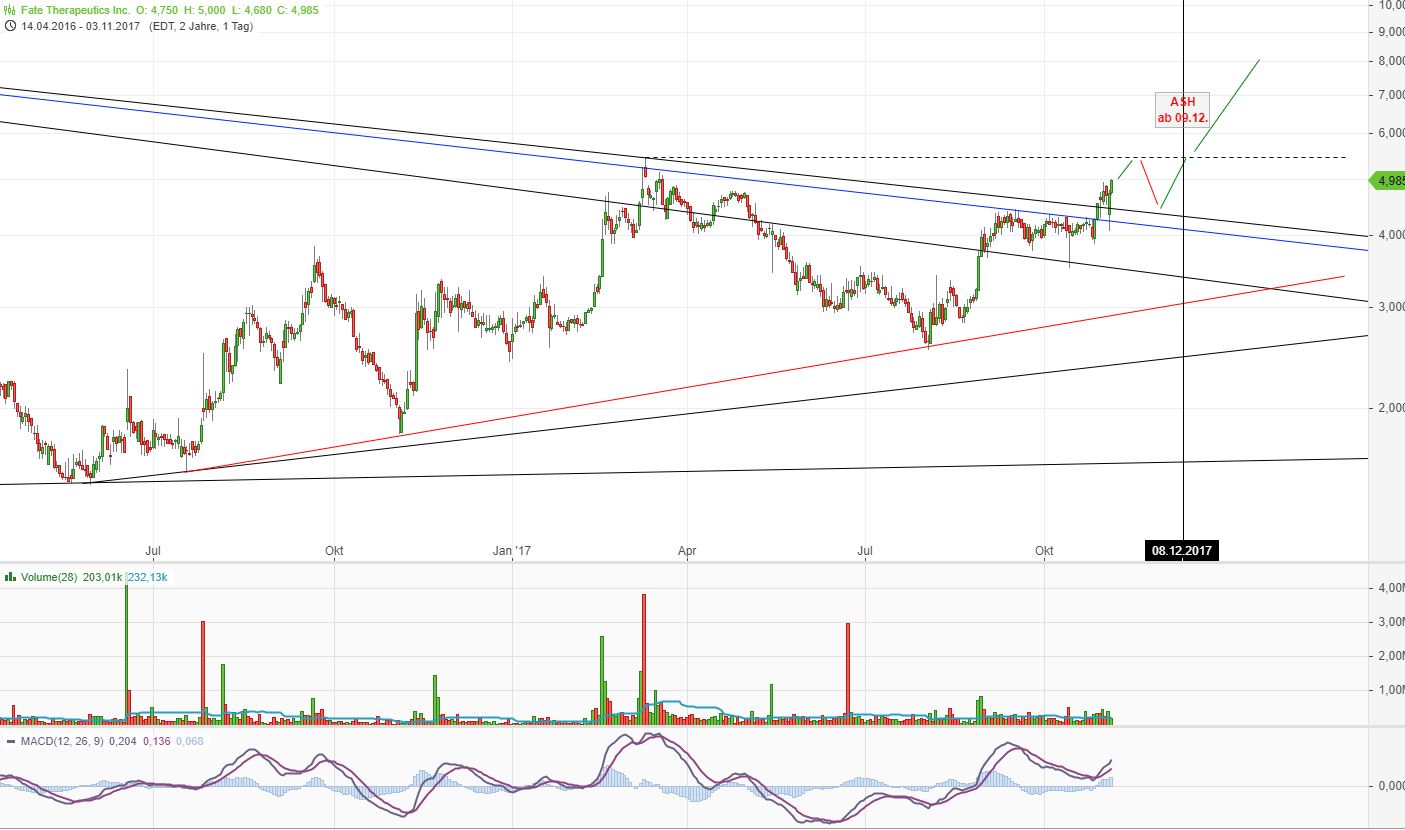 Das eine Aktie trotz einer Kapitalerhöhung steigt, sieht man auch nicht so oft. Spricht für eine relative Stärke von FATE.