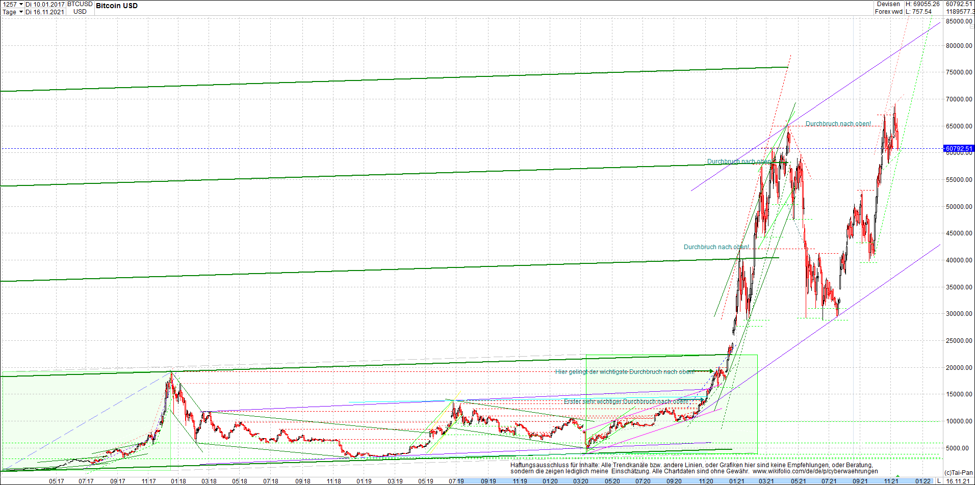 BITCOIN / BTC Chart heute, sehr langfristig.