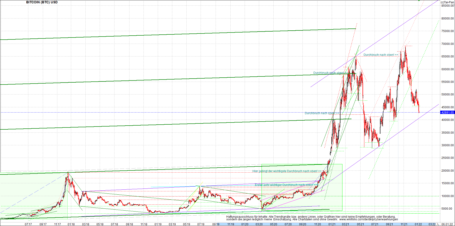 BITCOIN / BTC Chart heute, sehr langfristig.