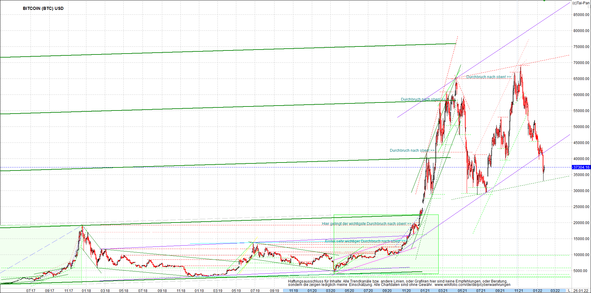BITCOIN / BTC Chart heute, sehr langfristig.