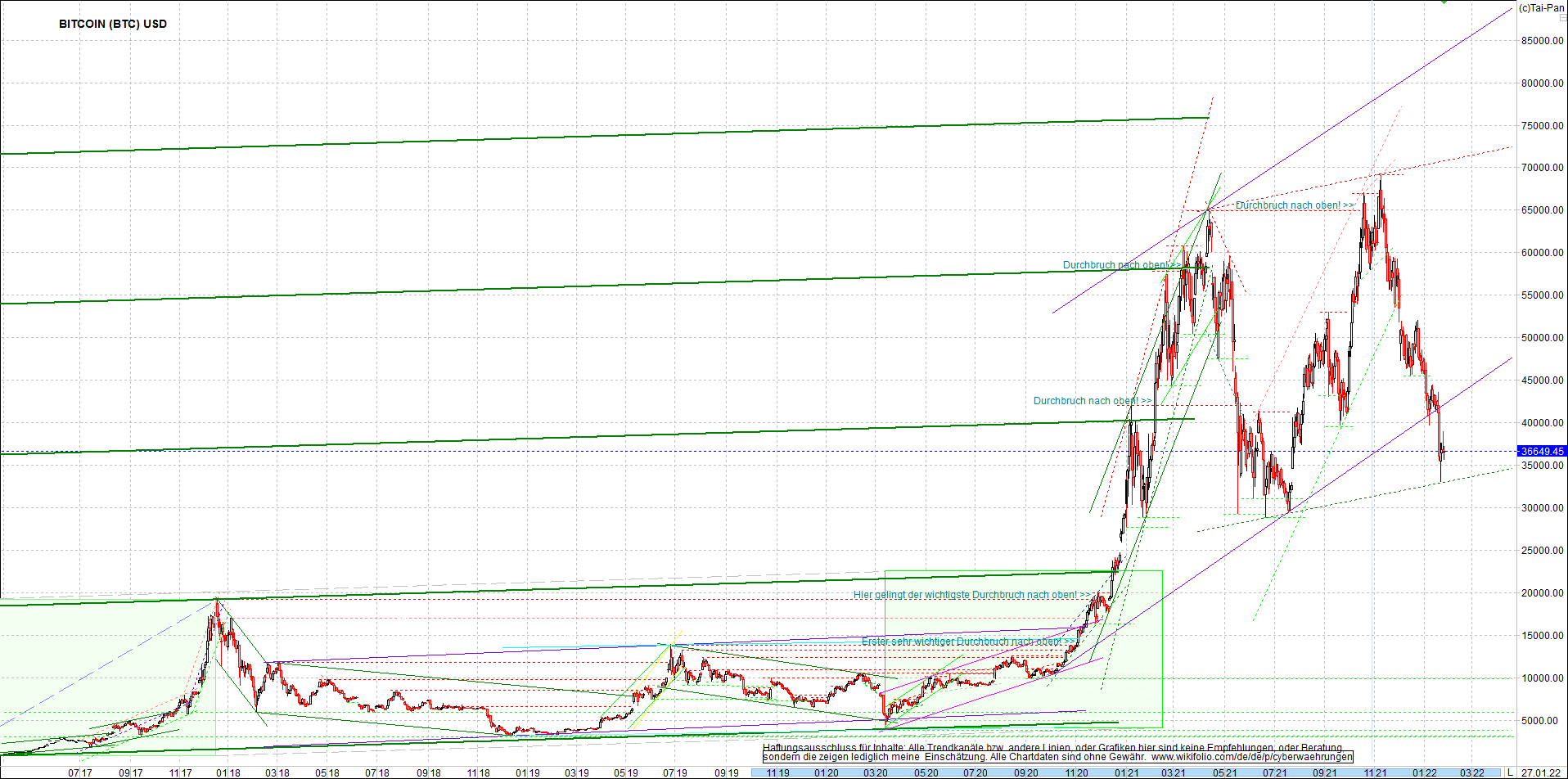 BITCOIN / BTC Chart heute, sehr langfristig.