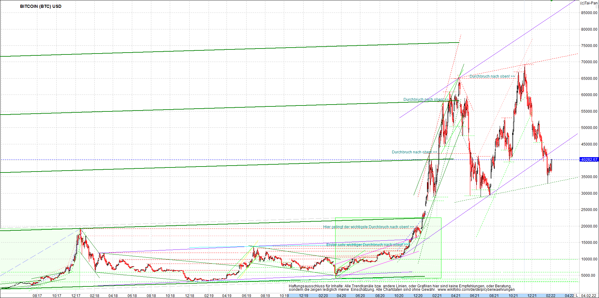 BITCOIN / BTC Chart heute, sehr langfristig.