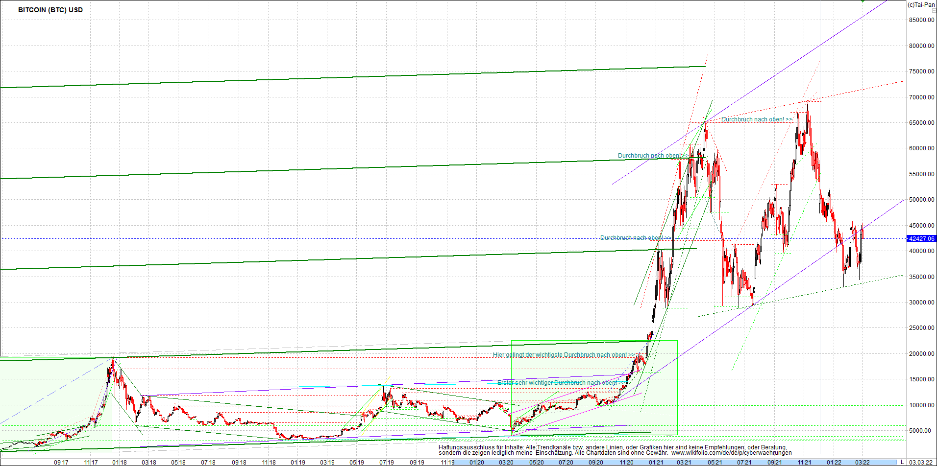 BITCOIN / BTC Chart heute, sehr langfristig.
