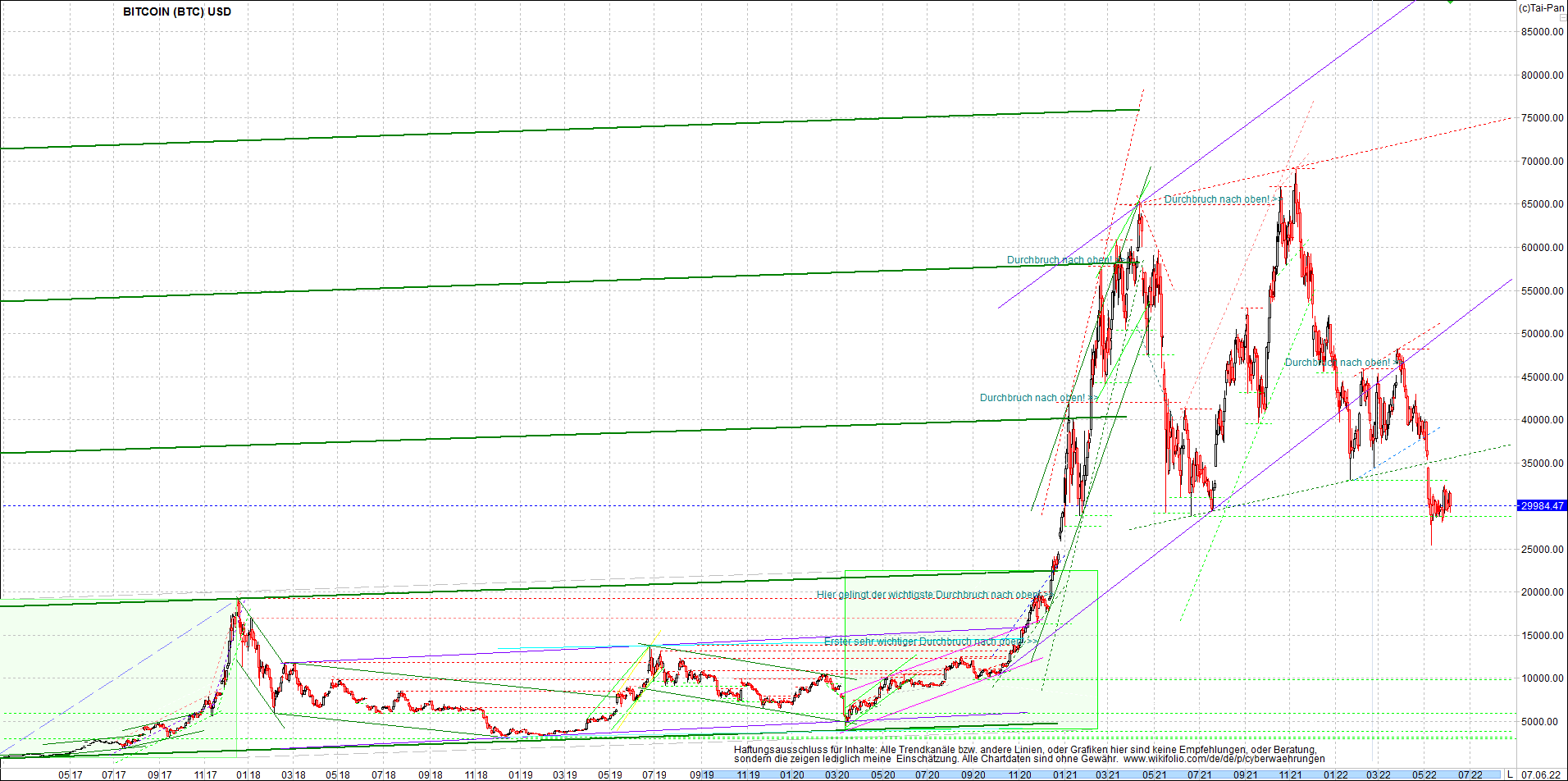 BITCOIN / BTC Chart heute, sehr langfristig.