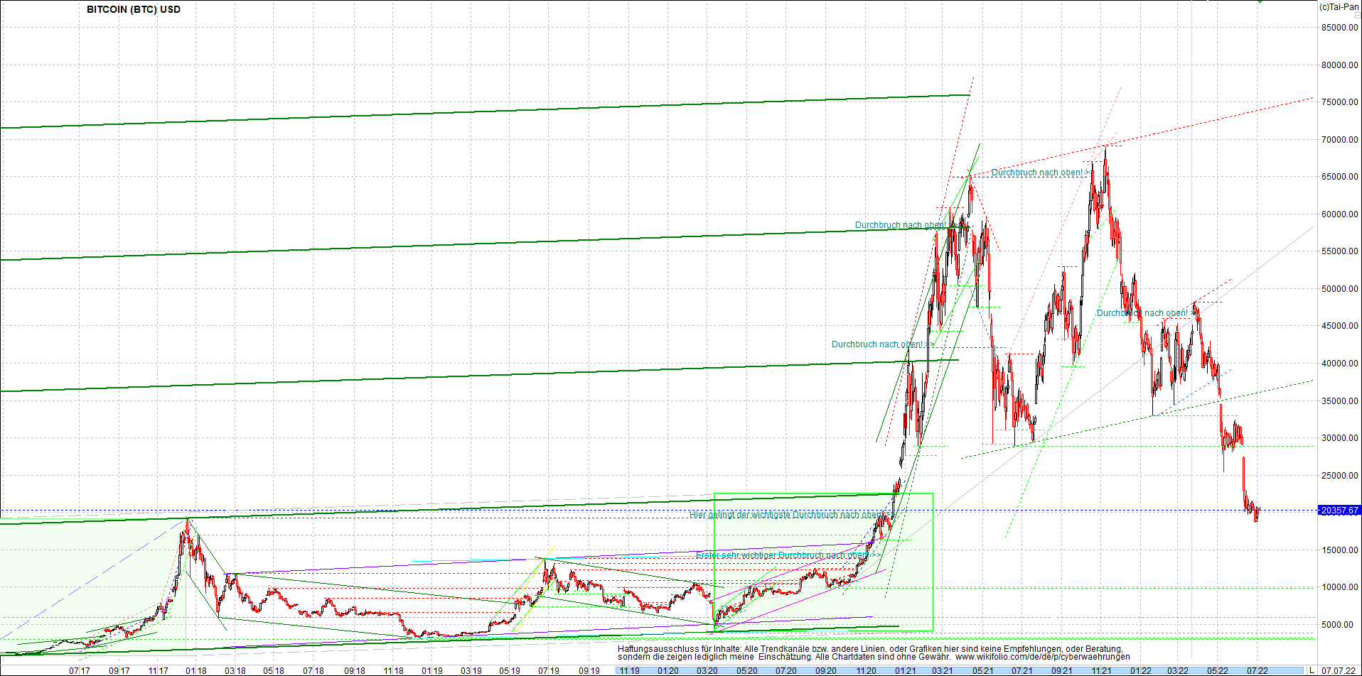 BITCOIN / BTC Chart heute, sehr langfristig.