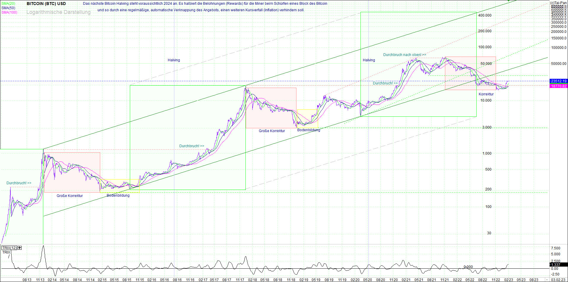 BITCOIN / BTC Chart heute, sehr langfristig.