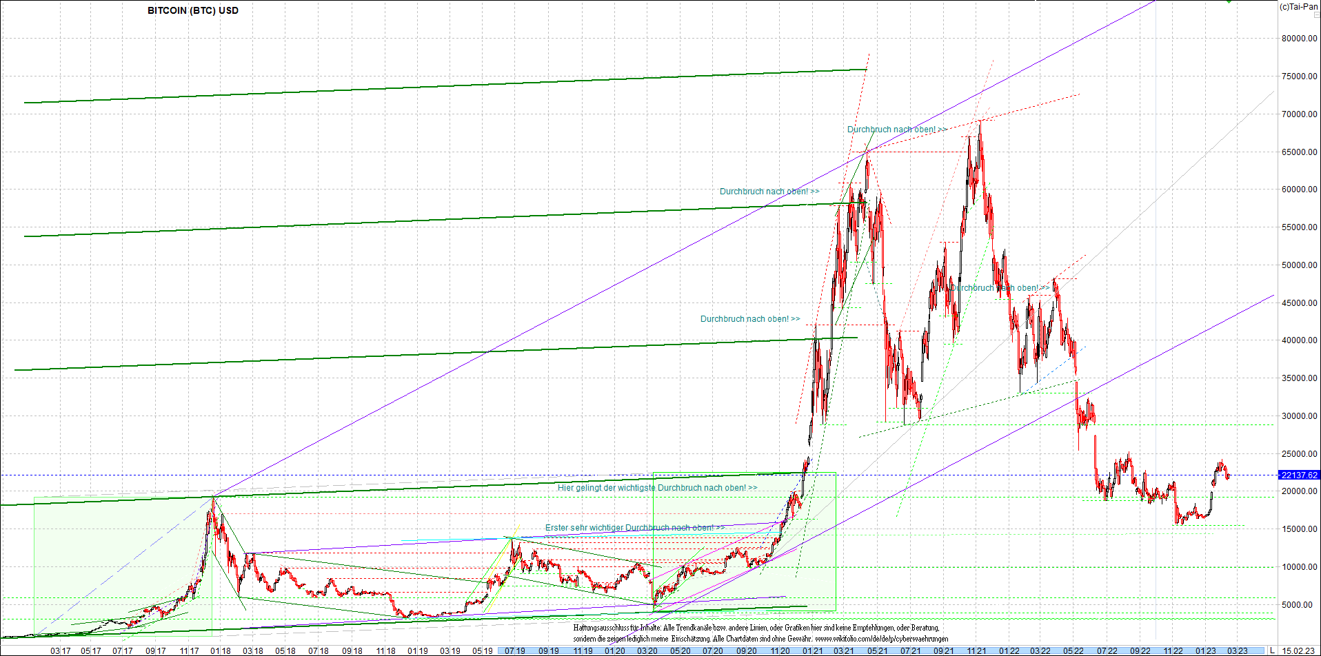 BITCOIN / BTC Chart heute, sehr langfristig.