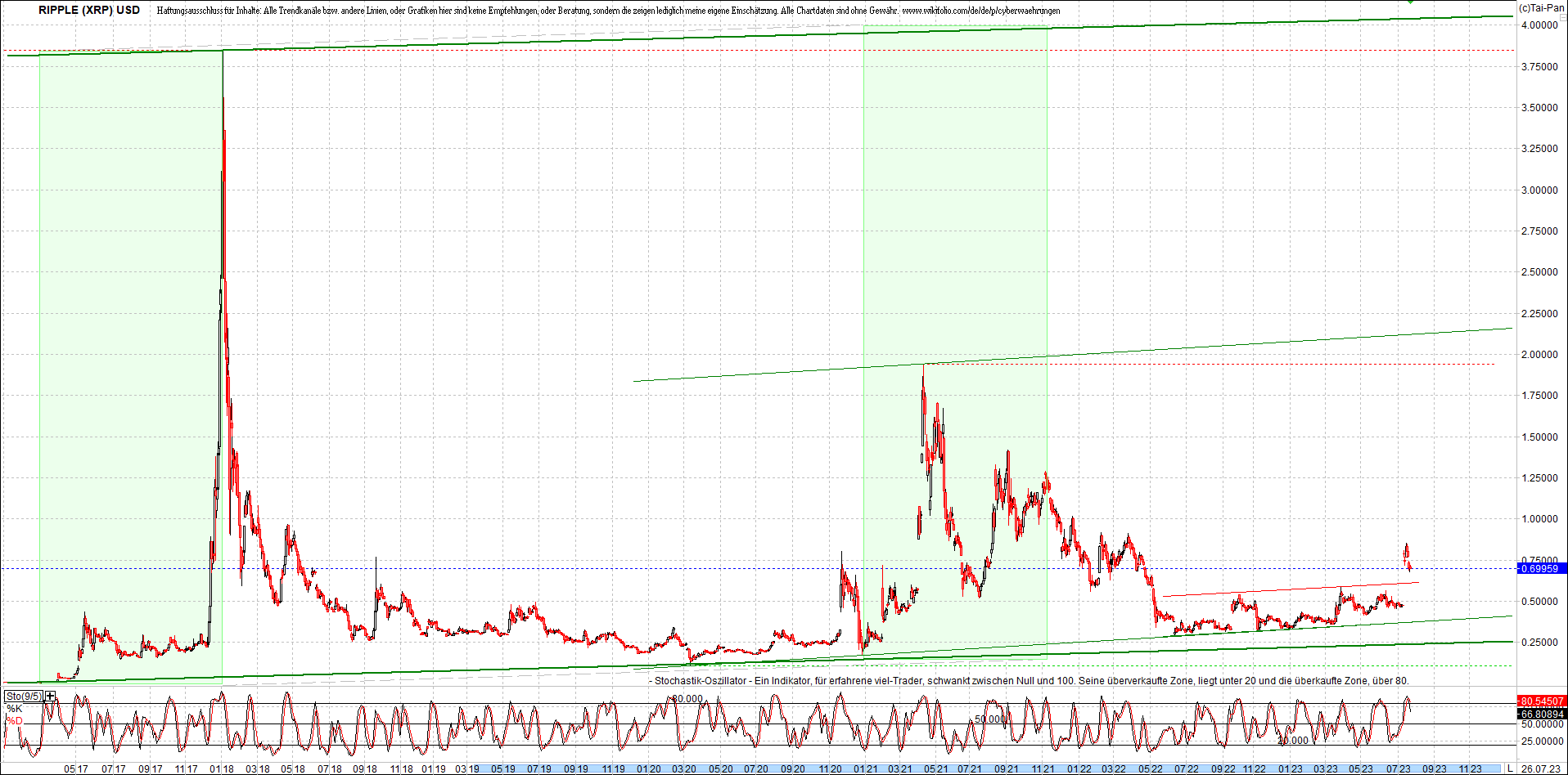 RIPPLE (XRP) am Morgen. Oben Ripplezertifikat.