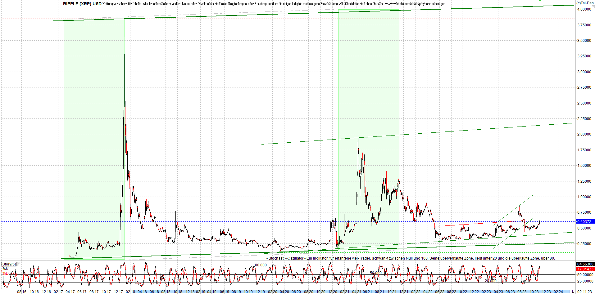 RIPPLE (XRP) am Morgen. Oben Ripplezertifikat.