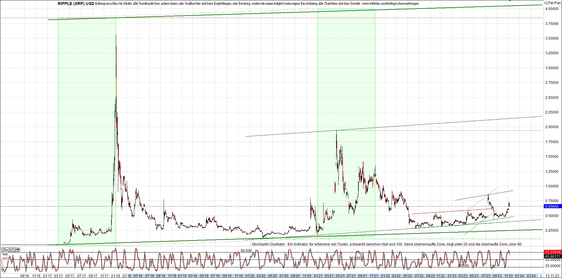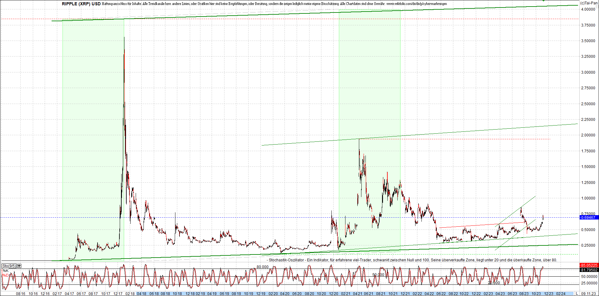 RIPPLE (XRP) am Morgen. Oben Ripplezertifikat.