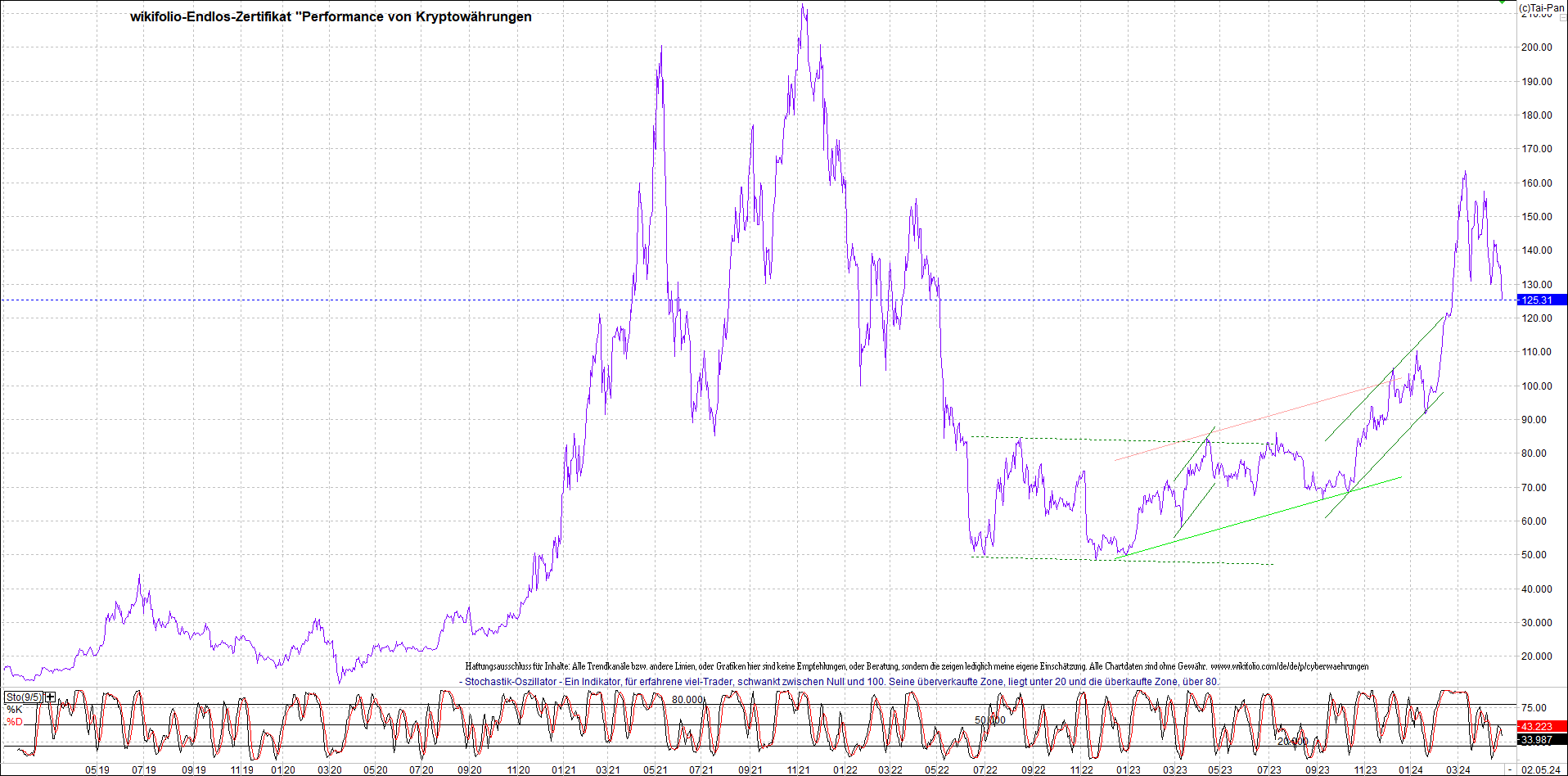 BITCOIN BTC Nachmittag, Oben Bitcoinzertifikat.