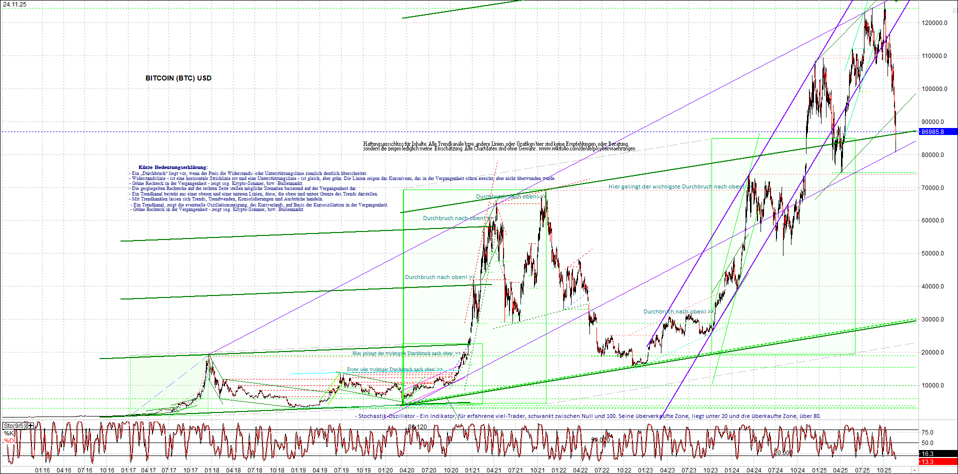 BITCOIN BTC Chart heute, sehr langfristig.