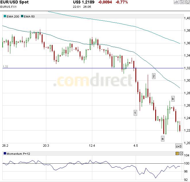Ich denke, dass wir momentan eine Stabilisierung des EUR/USD um 1,22 sehen. Zu erwähnen sei, dass EUR/USD damit an eine langfristige untere Trendlinie angekommen ist, die logische Konsequenz daraus sein wird, dass der EUR/USD eine deutliche Gegenbewegung einleiten wird.