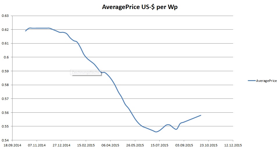 2015-Zubau aufgeteilt in Kontinenten nach den durchschnittlichen Zubauprognosen: