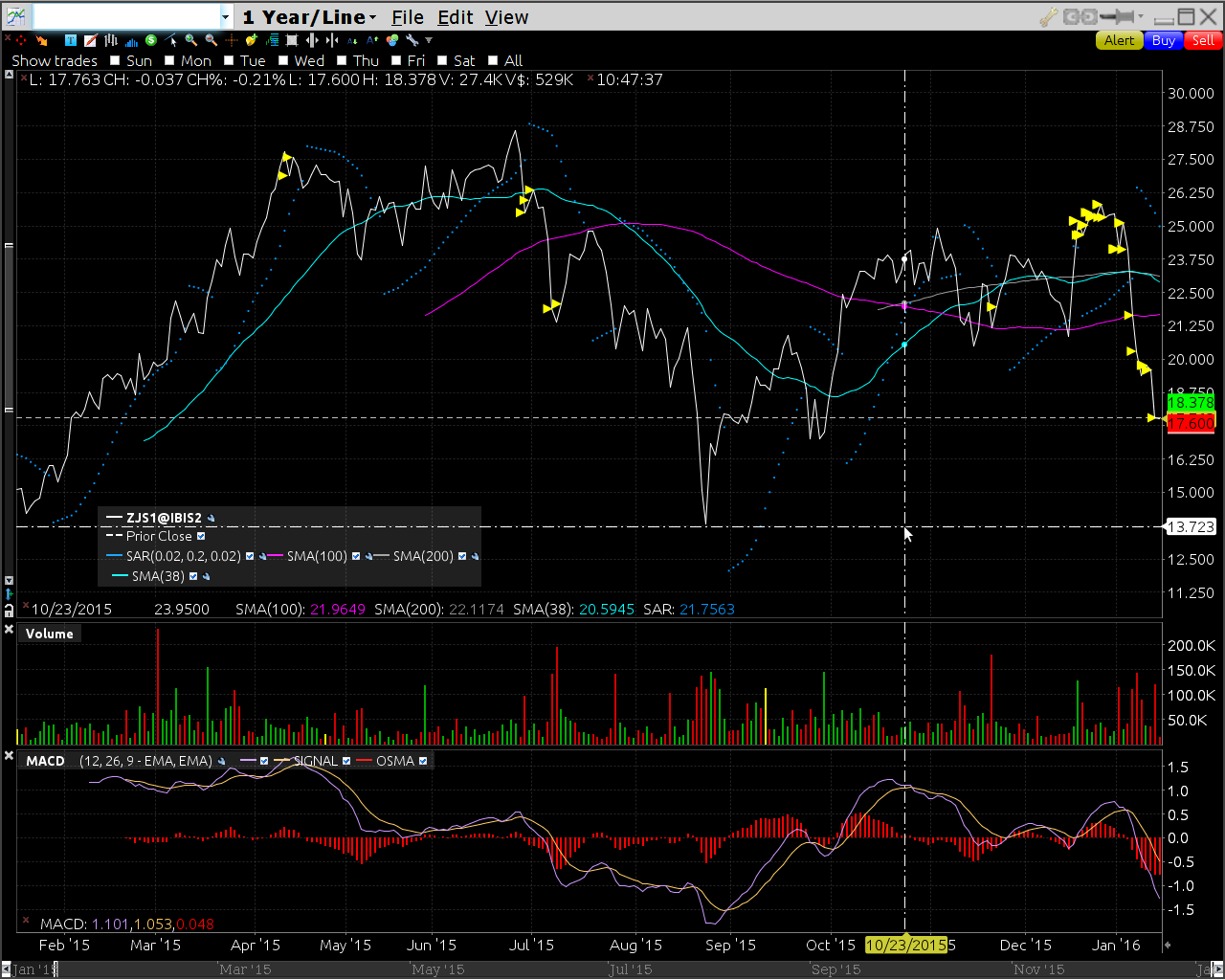 Profit-Taker bei Jinko ist grundsätzlich alles möglich. So hatten wir z.B. ein Januartief 2015 von 16,10 $ (20.1. 2015), das eigentlich auch niemand für möglich gehalten hätte, und sollte der S&P 500 und der Dow Jones ihre wichtigen Widerstände nach unten durchbrechen, dann dürfte es in der Tat in Richtung 16 $ gehen. Dann werde ich aber meine 2. Tranche (weitere 250 Aktien) setzen bei Jinko.