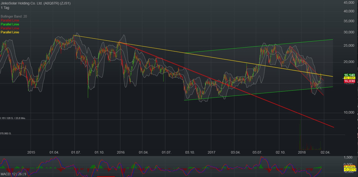 Die Guidance haut aber keinen vom Hocker. Q1 Bruttomarge wird nur noch zwischen 10 bis 12% erwartet, da offenbar der Verkauf der US Projekte niedrige Gewinnmargen mit sich bringt. Canadian hat ja bekanntermaßen 309 MW an US Projekten vor 2 Wochen verkauft und die werden in Q1 dann natürlich bilanzwirksam. Die Jahresmodulabsatzguidance liegt genau in der Mitte der 2017er Modulabsatzes (2017: 6,8 GW). Also wird kaum Wachstum erwartet. Canadian meldet dazu noch, dass ihre Modulproduktion in Kanada wie auch ihre Produktion in Vietnam nicht ausgelastet sind wegen den Strafzöllen in den USA.
