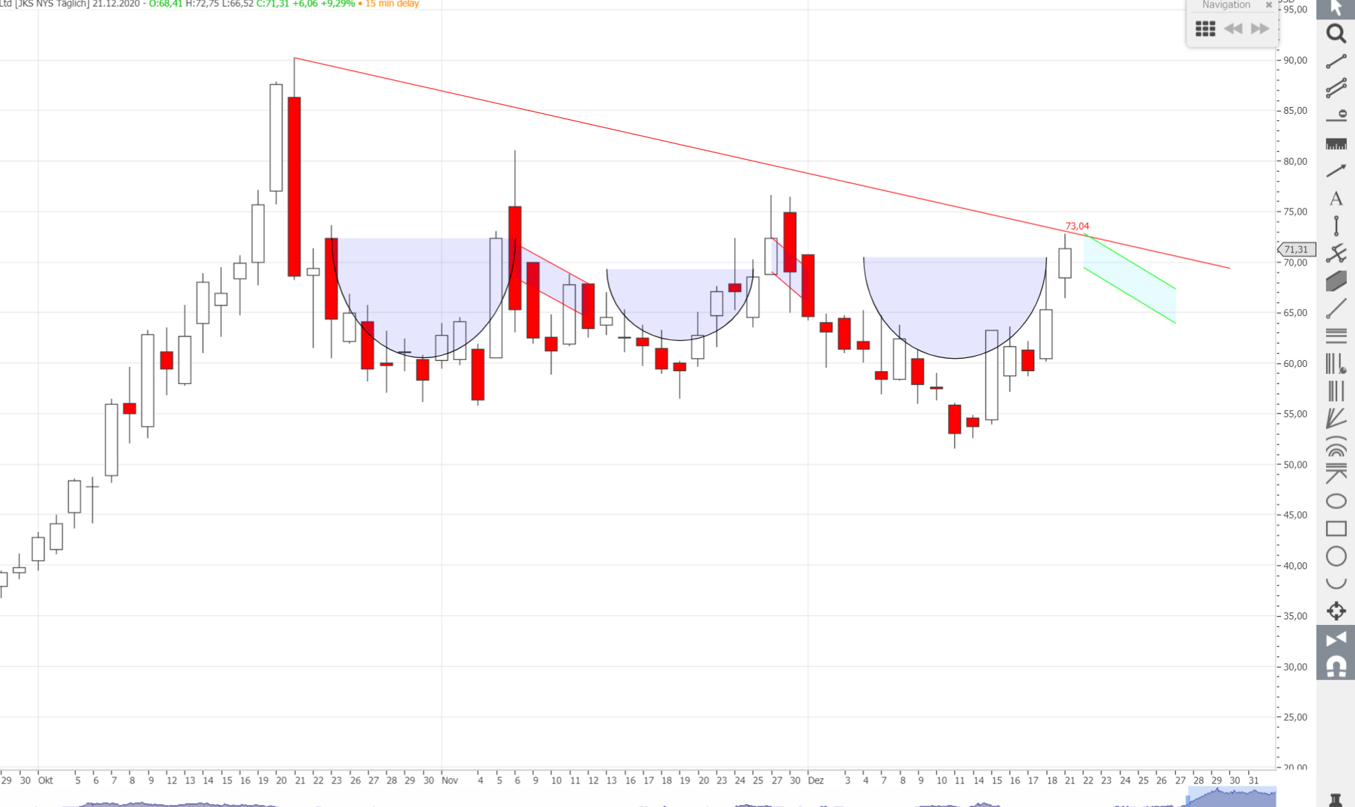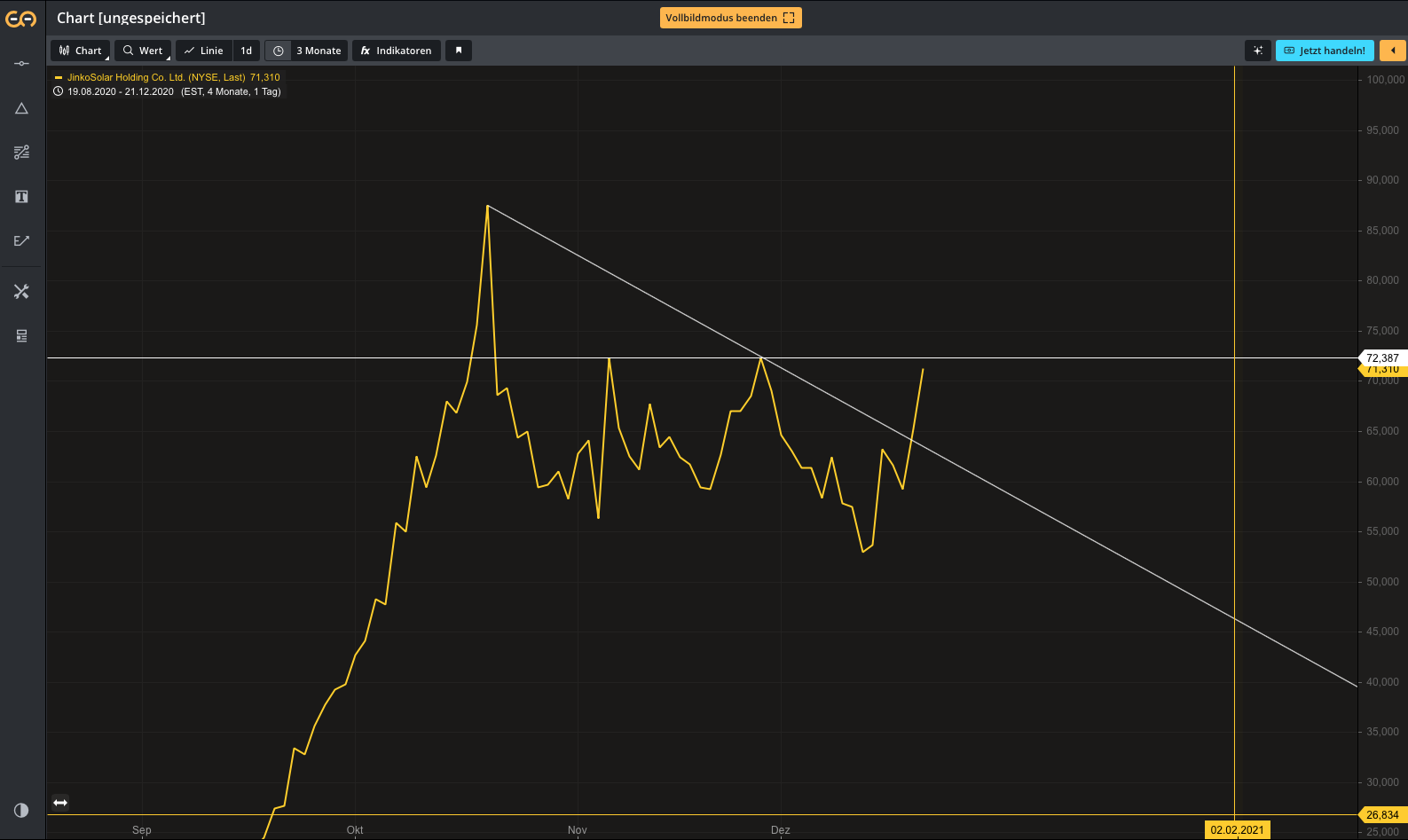 Wenn heute er über die 76,20$ käme, würde das Deine Theorie stützen. Ansonsten reicht es für die Widerlegung schon, wenn er sich nur simpel ans Bollinger oder die Durchschnitte hält.