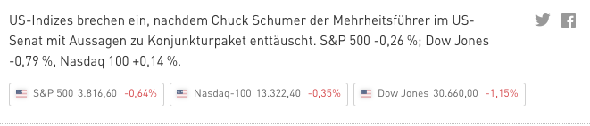 Anscheinend hat eine nicht unbeträchtliche Zahl Amerikaner erst heute bemerkt, dass sie einen neuen Präsidenten haben. Sogar die Impfstoffaktien haben sich nach oben bewegt und Apple ein neues Hoch erklommen.