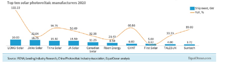 Die Top 10 der Modulproduzenten nach Absatz in 2020: