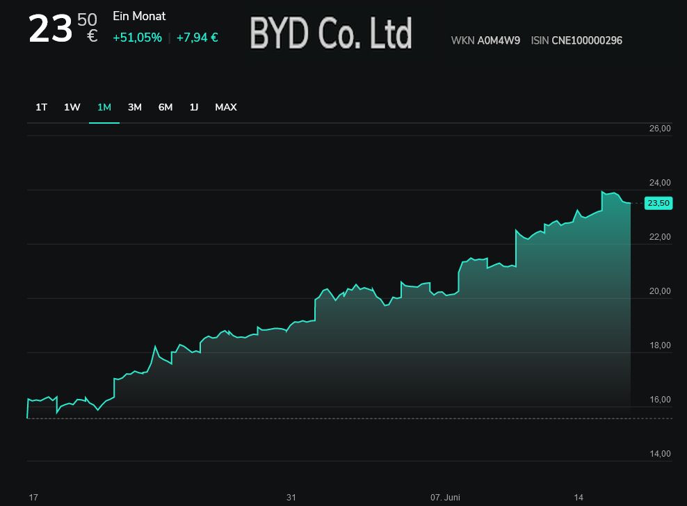 Aber nicht alle "China-Böller" verlieren, bei BYD ist der Aufwärtstrend immer noch intakt