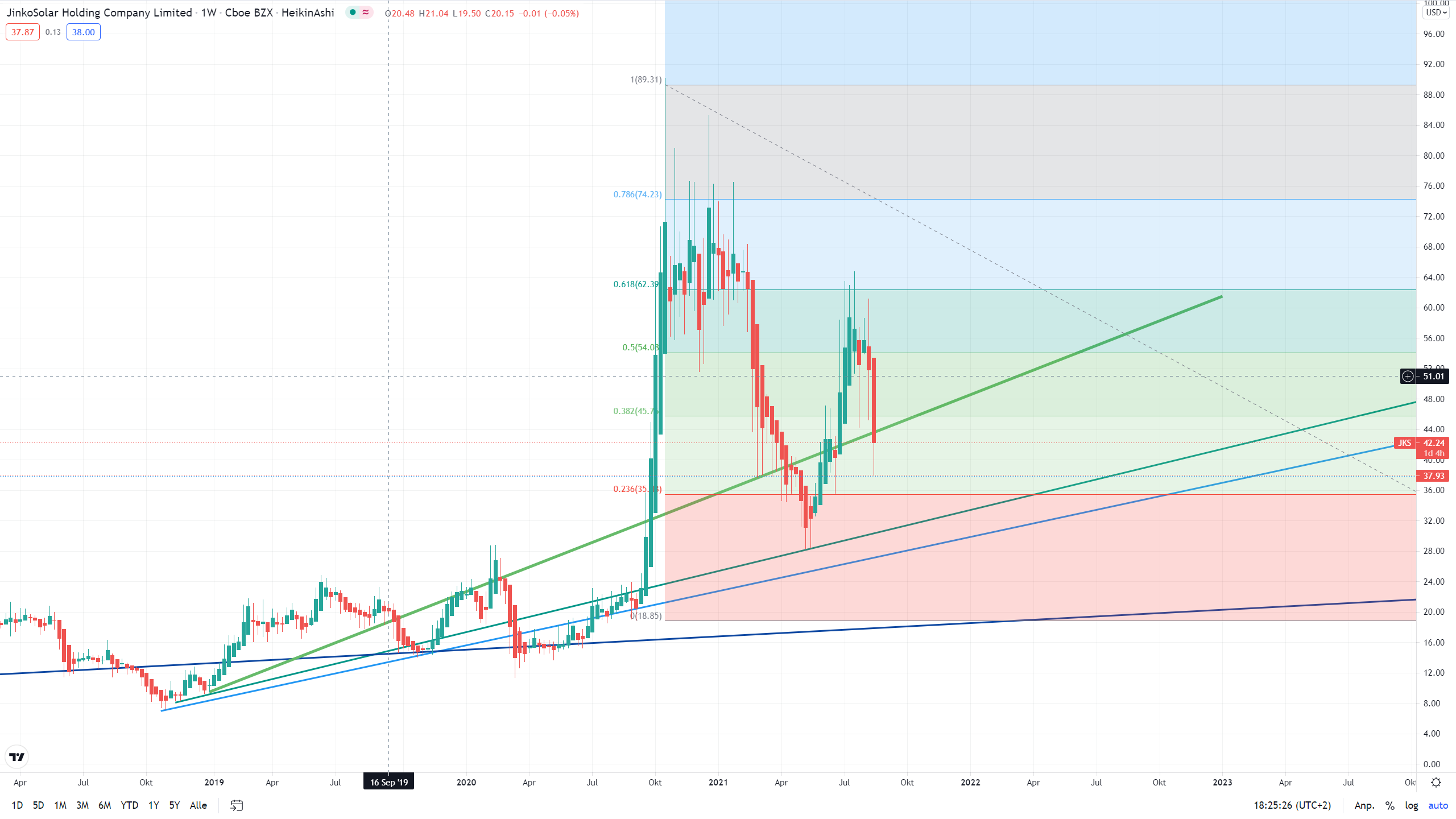 Der Wert macht jetzt weiterhin ganz stoisch mit den Jinko-typischen Chartmustern weiter. Das ist mit dem oberflächlichen Blick nicht zu erkennen, deswegen hier noch mal ein Update des alten, hier geposteten Chartbildes.