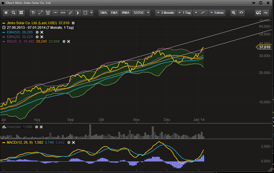 Von Yingli kam heute auch noch eine sehr bullische Nachfrageprognose. Der Yingli Finanzvorstand Wang Yiyu erwartet in diesem Jahr eine globale Nachfrage von 50 GW, davon sollen aus China 14 GW kommen.
