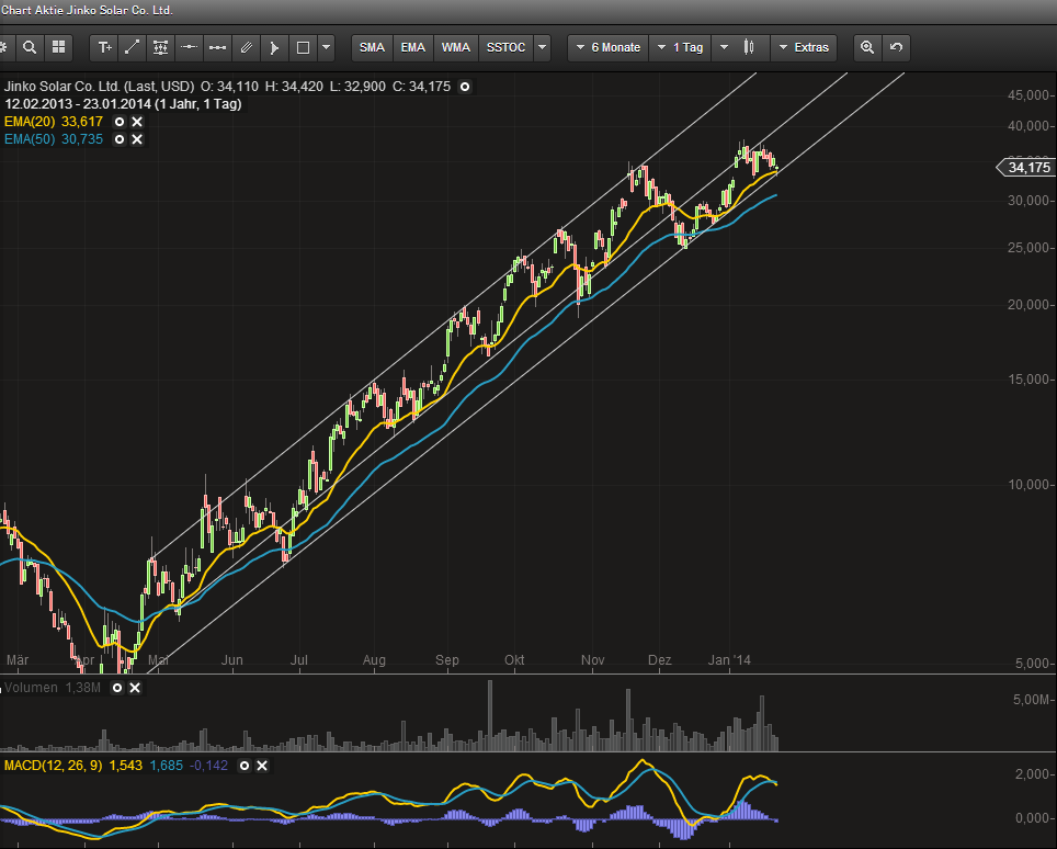 Ich vermute dass der Trend halten wird, vllt gehts wieder nen tick drunter, aber dann sollts wieder aufwärts gehen.. obwohl ich auf den Schnitt beim EMA50 gehofft hätte, der aber in der Vergangenheit nur geschnitten wurde, als Jinko von der oberen Trendgrenze nach unten ging... und da waren wir schon lang nicht mehr...