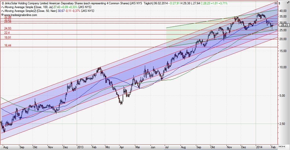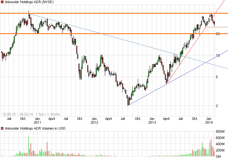 Zwar hat sich das charttechnische Bild derzeitig eingetrübt, aber man muss auch Bedenken, dass diesen negativen Nachrichten derzeit kaum positive gegenüberstehen. Dies wird sich aber meiner Meinung nach spätestens ändern, wenn die ersten Quartalsberichte Mitte/Ende Februar erscheinen. Auch Anfang letzten Jahren ging es mit Jinko deutlich runter.