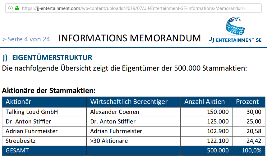 Der Wert des Beteiligungsportfolios liegt also über 100% höher als der Aktienkurs von 12,40 EUR.