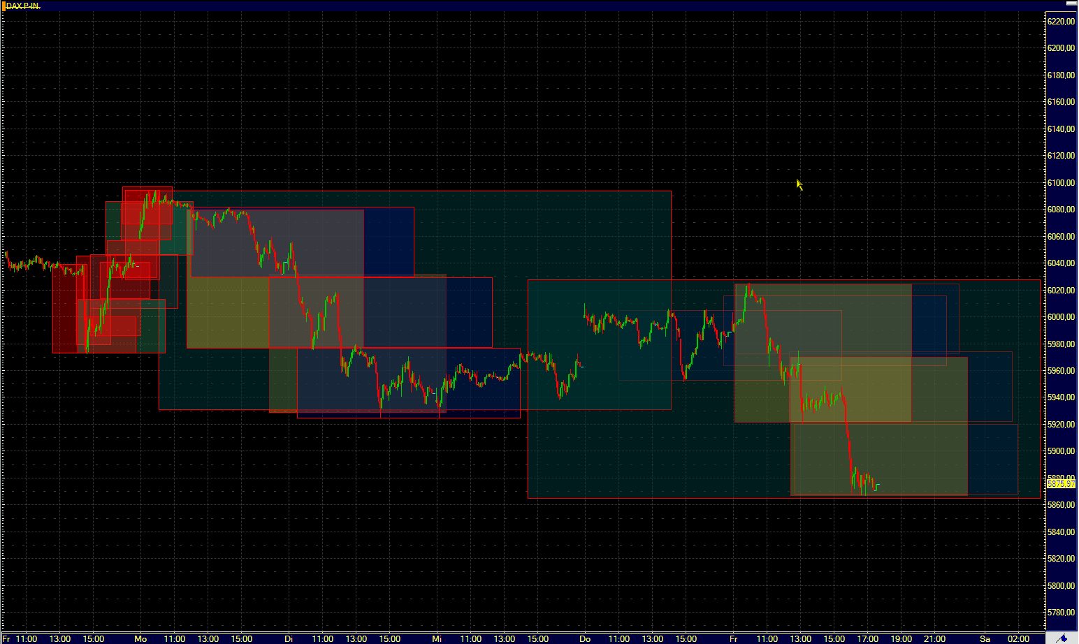 (Wer nicht weiss wie die Quadrate funktionieren, einfach mal an den Anfang des Thrads zurückblättern und sie sich in Dow und Dax ansehen)