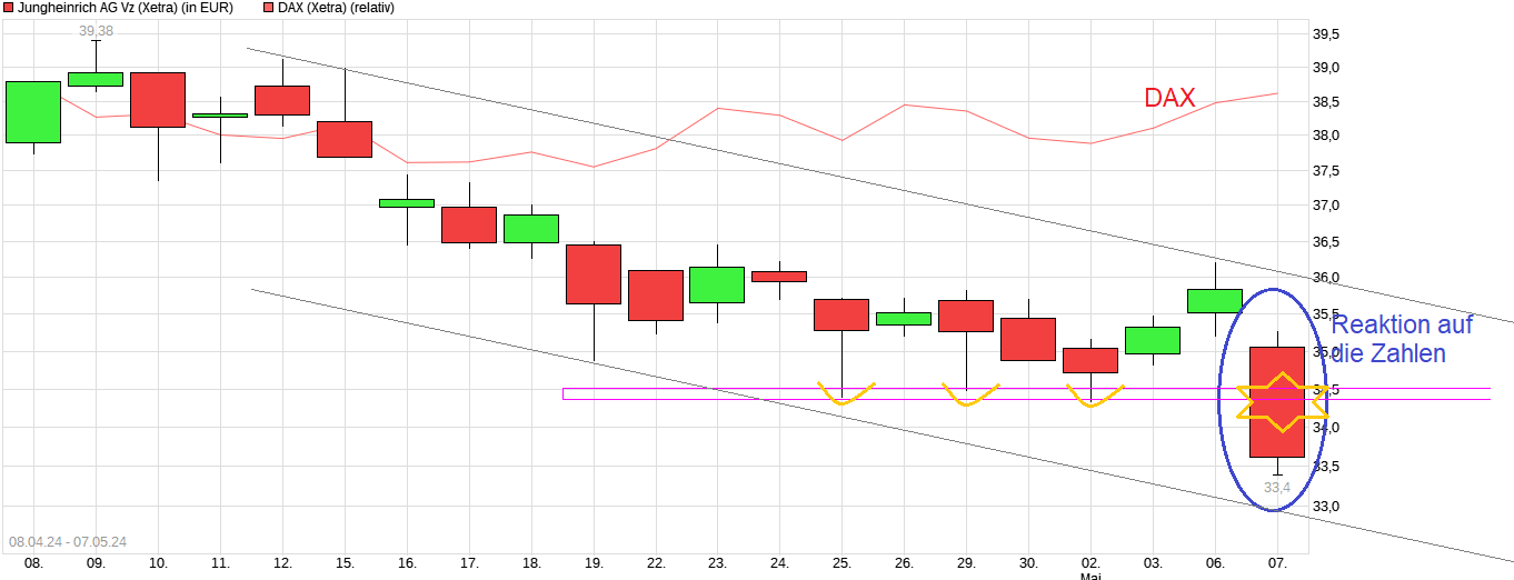 Citigroup-Analyst Vivek Midha verlieh den Aktien vor der Vorlage der Geschäftszahlen am 28. März den Status "Positive Catalyst Watch", womit er mit guten Nachrichten seitens Jungheinrich rechnet. Jungheinrich biete eine interessante taktische Einstiegsgelegenheit, so der Experte, der seine Erwartungen an die Resultate und die Ziele von Jungheinrich für das Gesamtjahr nach oben schraubte und dabei auf jüngste Aussagen von Konkurrent Kion und dessen zuletzt starke Auftragslage verwies.