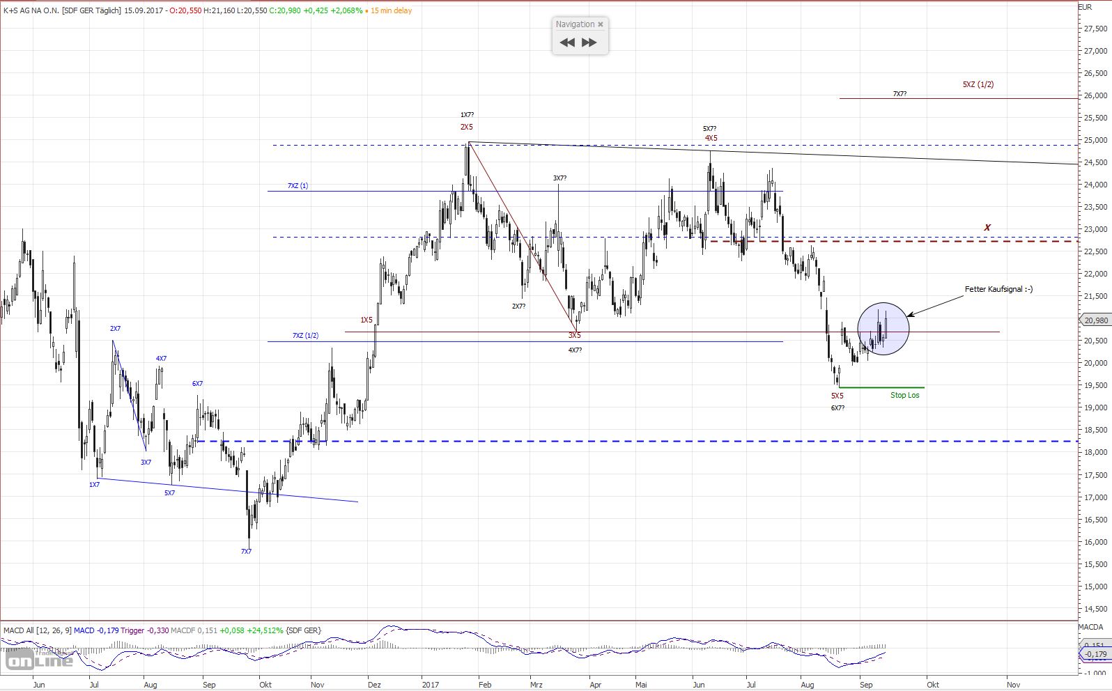 Der Markt sieht K+S hier anscheinend fair bewertet und solange der Kalipreis auf diesem Niveau verharrt, wird das vermutlich auch so weiter gehen.