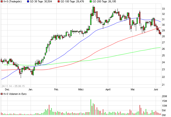 k+s reagiert ganz einfach sehr sensibel auf die Kursänderung usd vs. euro.