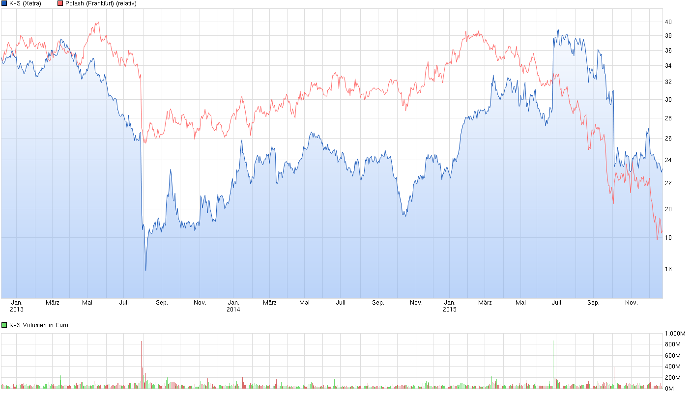 Seit dem zweiten Quartal haben sich zudem die Preise für Kali- und Magnesiumprodukte leicht abgeschwächt. Zum Teil lag das auch an den schwachen Währungen in einigen wichtigen Schwellenländern wie Brasilien. Ein Anziehen der Kalipreise, von dem K+S profitieren würde, ist derzeit jedenfalls nicht in Sicht.