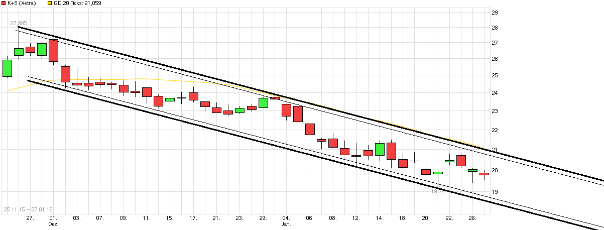 Eine Gelegenheit wäre einen Ankeraktionär zu finden. Da hat man eventuell etwas zu wenig Energie reingesteckt. Aber auch das ist nun leicht dahingeredet. Es handelt sich hier um Rohstoffe. Seit der Krise lassen viele große Pensionsfonds und Co die Finger davon. Weiterhin ist das Geschäft volatil. Dann noch die Umweltauflagen in D. All dies wird Ankeraktionäre eher abschrecken, da sie in erster Linie ihren Kunden verpflichtet sind und (hier in der Tat sofort) liefern müssen. Ich bin bei K+S weil ich auf meiner Zeitskala eine überdurchschnittliche Rendite (gewichtet auf das Risiko) erwarte. Die weitere Verzinsung dieser Anlage sollte auch deutlich über den anderen liegen. Klar ist das kein Prozess von hier auf da. Allerdings projizieren hier viele meine Anlageentscheidung auf ihre Tagestrades. Das eine hat mit dem anderen überhaupt nichts zu tun. Dafür muss ich nicht alles positiv sehen. Wenn ich hier anderer Meinung wäre, wär ich vermutlich um Längen konsequenter als diejenigen die hier ständig rumjammern und keine Entscheidung treffen, weil sie den aktuellen Depotstand zur Entscheidungsfindung heranziehen. Das ist bei mir definitiv nicht der Fall.